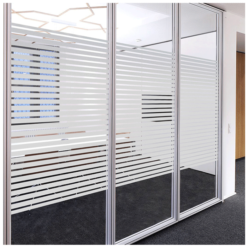 玻璃貼紙貼膜磨砂腰線透光不透明辦公室百葉條紋窗戶貼膜靜電防爆防撞條其實也是有必要有一些隱私性的。墻壁設計不合適,玻璃隔斷貼磨砂膜考慮一下。磨砂膜可以根據對于透明性的需求,進而選擇鏤空磨砂膜或者彩印磨砂膜,價格也有所不同。磨砂膜還有條紋磨砂和花紋磨砂,裝飾效果也很美觀,可以說是很適合辦公室裝修的了。
