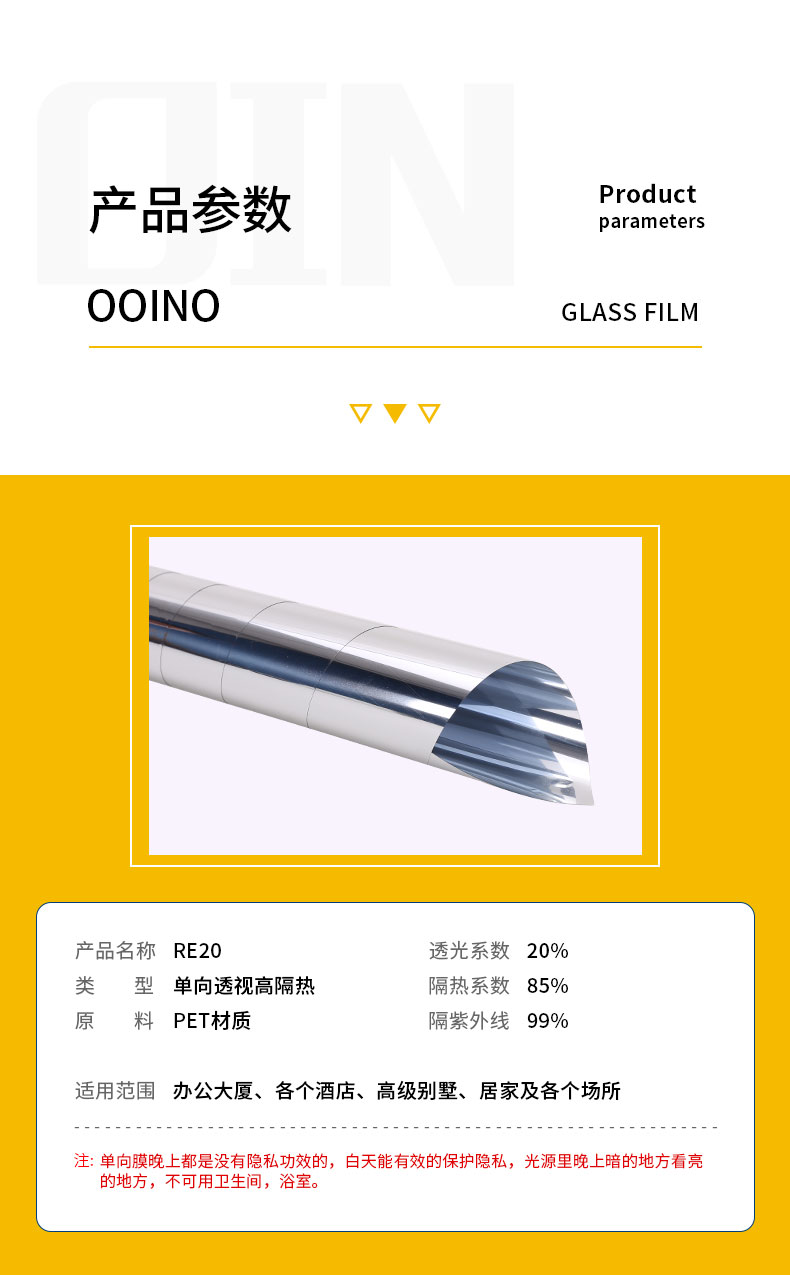 貼膜型號:單向透視隔熱膜
